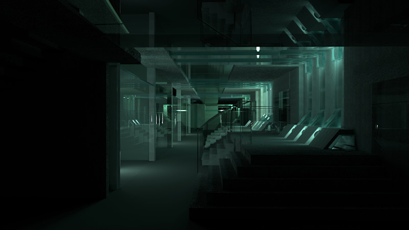 The 'Biolights Research Centre' is split into public spaces for public viewing and laboratory spaces for the researchers. The aim is to provide the researchers with the optimal environment for testing, whilst exposing visitors to this new form of lighting technology. The laboratories are also split into DNA labs, where scientists extract and modify bioluminescent genes, and testing labs, where researchers test the efficiency of the biolights.